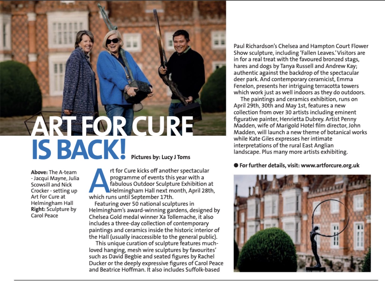I am pleased to take part at this exhibition with 8 sculptures, raising money for the care and cure of breast cancer this summer, located at one of the country’s finest Elizabethan stately homes.