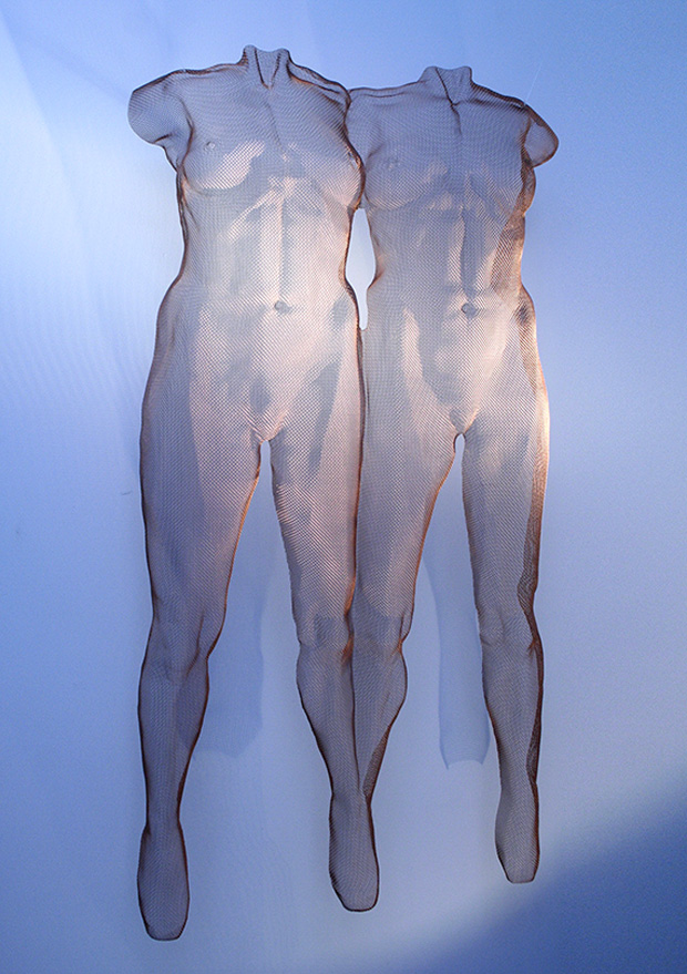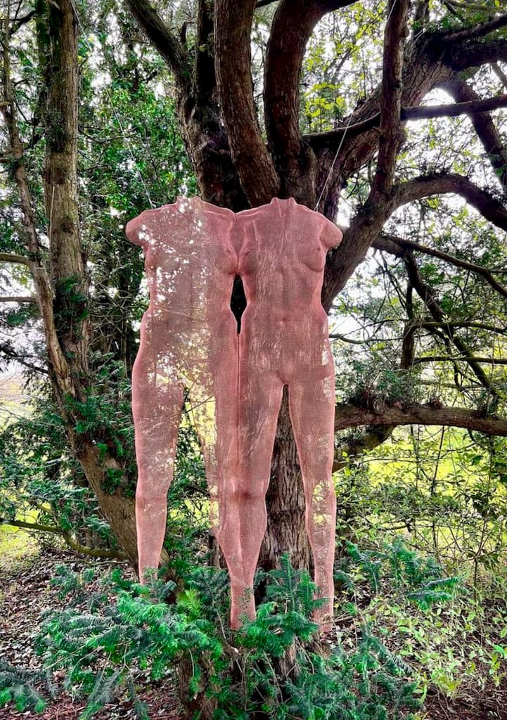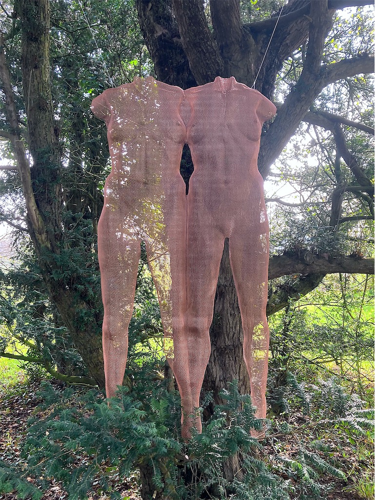 • Bronze-mesh wire sculptures by David Begbie and seated figures by Rachel Ducker.