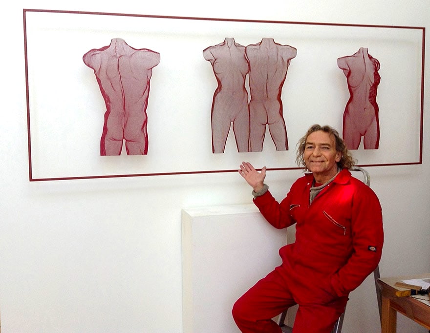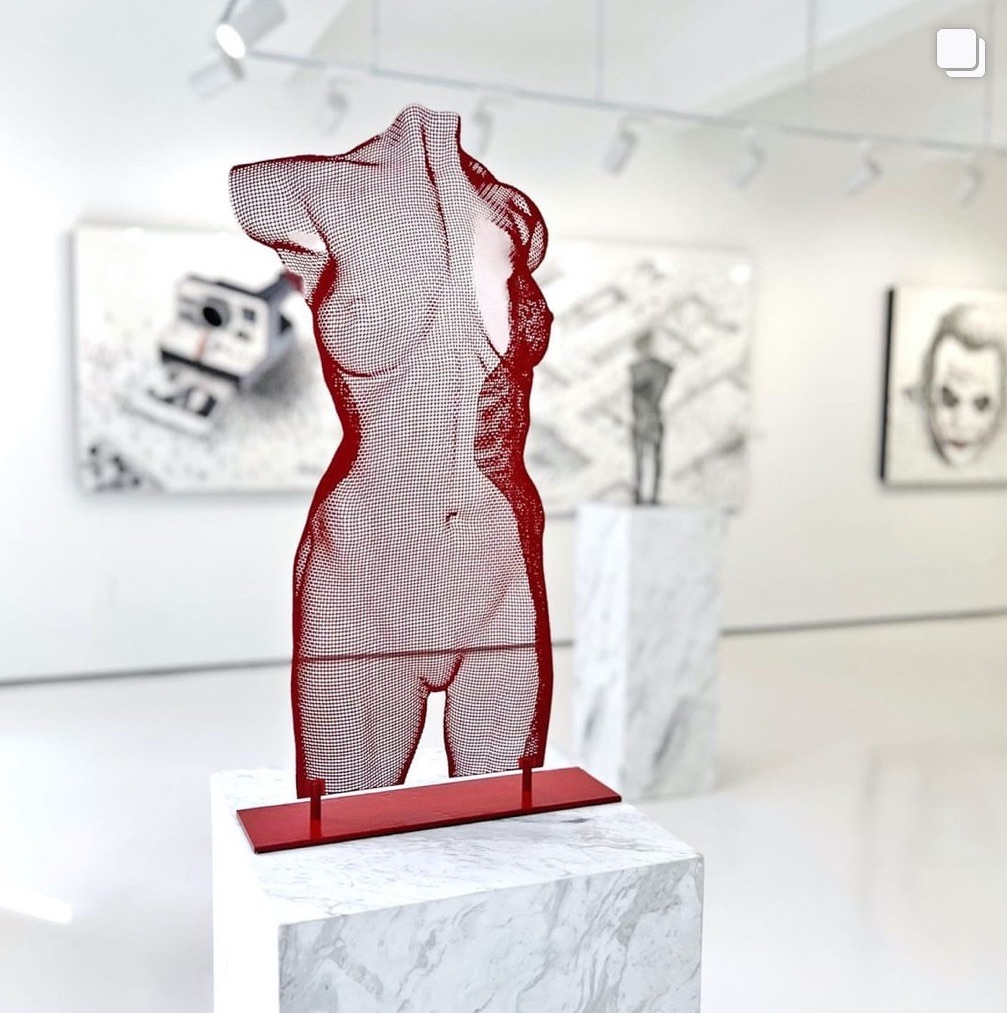 ‘VENUS 3’ is part of a limited edition of 9. This red version of series VENUS small is made from steel panel, featured as a freestanding sculpture on a metal base. Alternatively the artwork can be suspended. Height 65 cm.