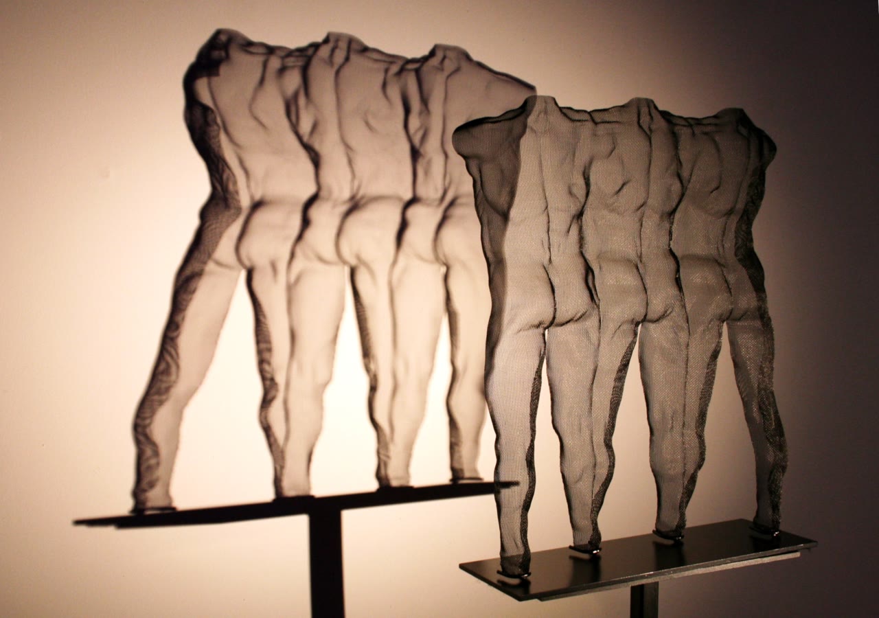 The multiple figures are all about relationships.This sculpture here is about masculinity, talks about sticking together - as men, friends - but it has lots of other interpretations.